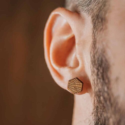 Série colorée des clous d’oreilles Indyana peints à l’acrylique dans quatre variantes de couleurs pastel. Fabriqués dans du bois de hêtre suisse recyclé, soigneusement sélectionné dans une menuiserie locale !
